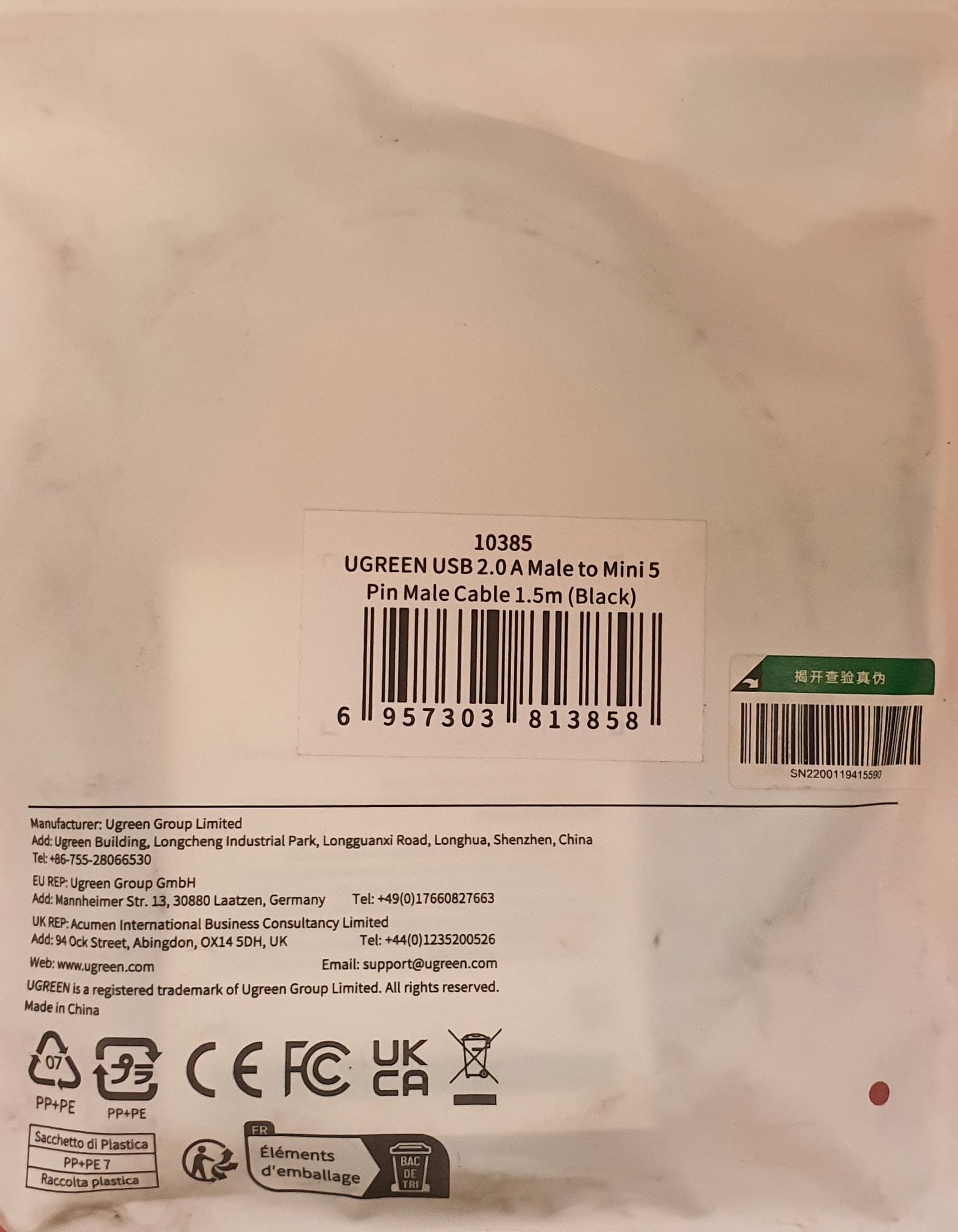 Conecta tus dispositivos con este cable USB 2.0 A a Mini 5 Pin de 1.5 metros, ideal para cámaras, discos duros y otros gadgets con entrada Mini USB. Fabricado por UGREEN, garantiza transferencia rápida y durabilidad. De color negro y con certificación de calidad, es perfecto para uso personal y profesional.